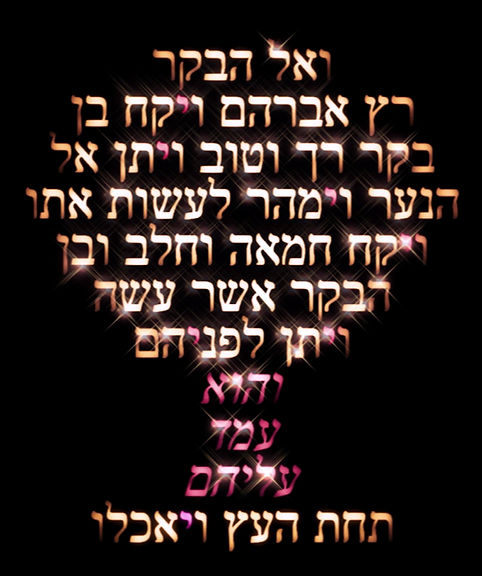 ״וַיִּקַּח חֶמְאָה וְחָלָב וּבֶן הַבָּקָר אֲשֶׁר עָשָׂה וַיִּתֵּן לִפְנֵיהֶם וְהוּא עֹמֵד עֲלֵיהֶם תַּחַת הָעֵץ וַיֹּאכֵלוּ״